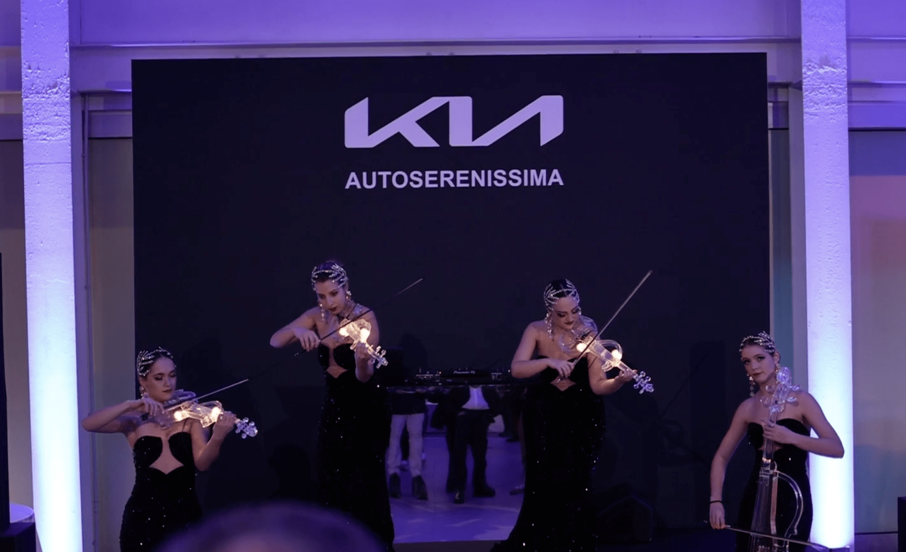 An elegant string quartet with innovative LED instruments, interlude entertainment with live DJ and sax, performances by energetic dance crews to introduce the institutional moments, all preceded by instrumental introductions powerfully performed by a crew of LED percussionists raised on the mezzanine of the dealership, to highlight the structure during its inauguration and immerse the public in an all-round experience.